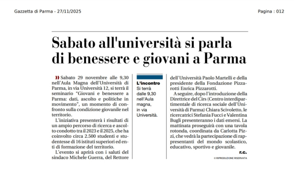 Giovani e Benessere a Parma dati, ascolto e politiche in movimento